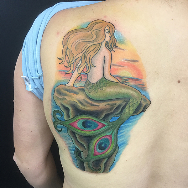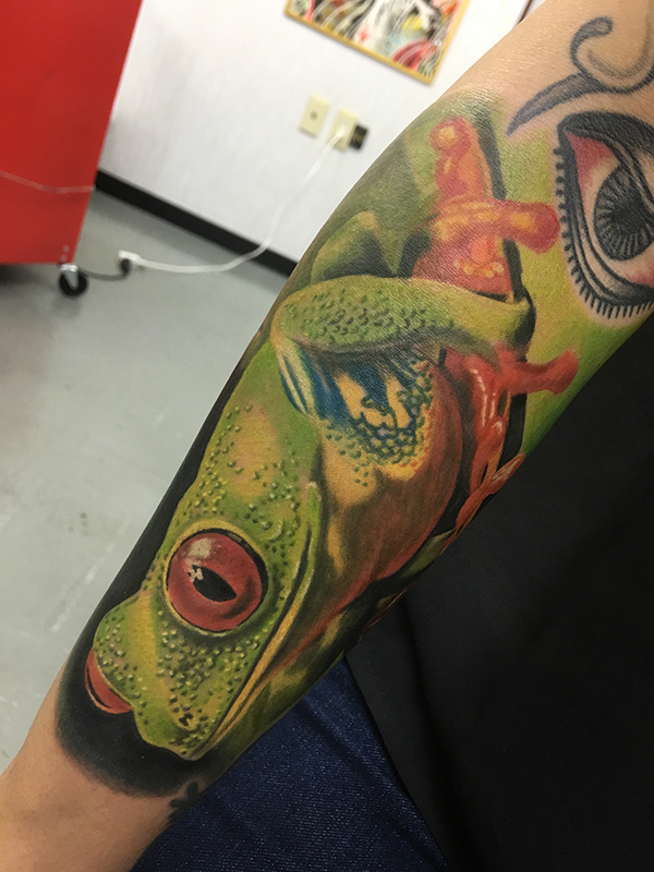 Red-eyed tree frog, Realistic style人魚とサンセット