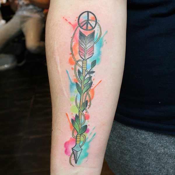 Girl of Banksy and watercolor-styleバイオオーガニックスタイルの内側に宇宙、カバーアップタトゥー