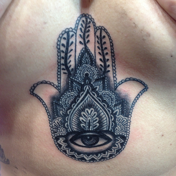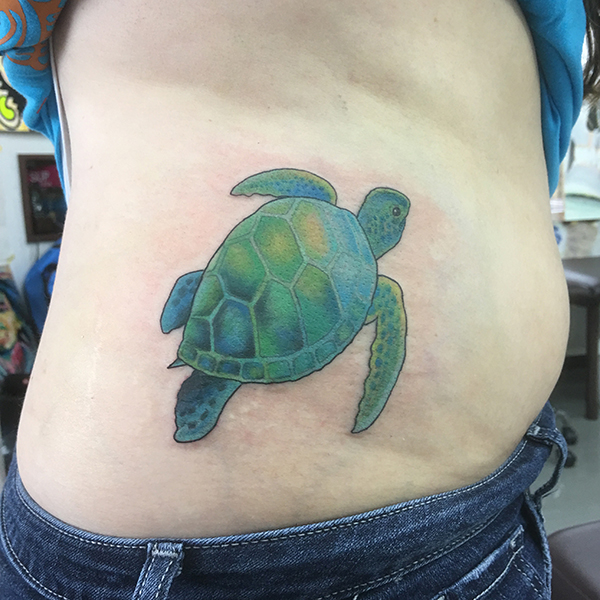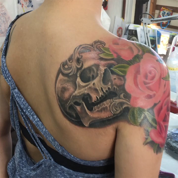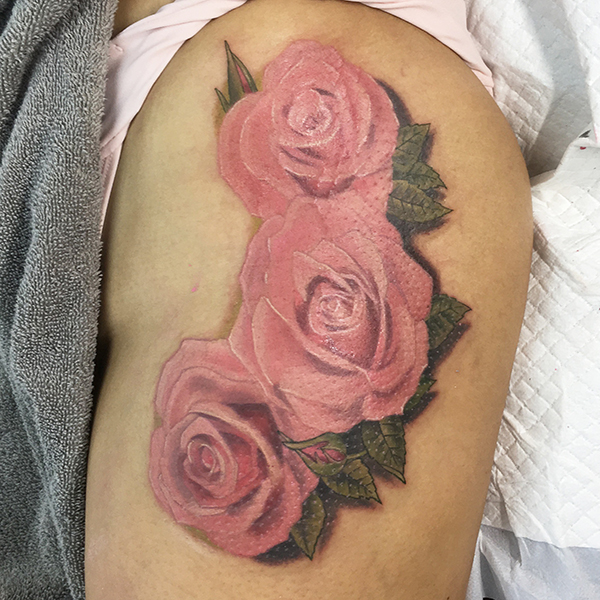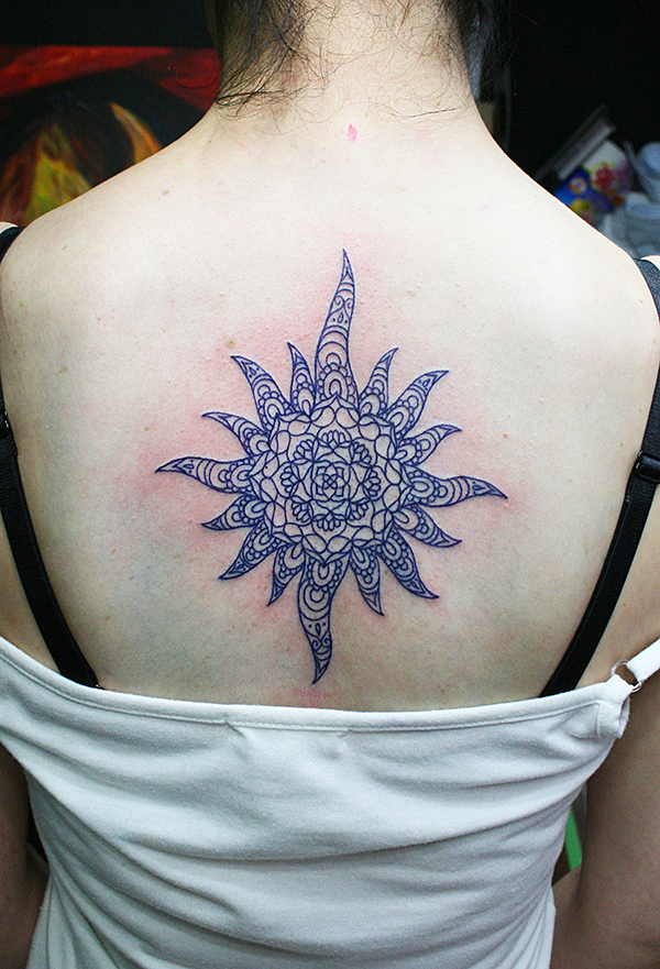 Blue rose and scissors. cover up tattooポリネシアンスタイルタトゥー、フリーハンド