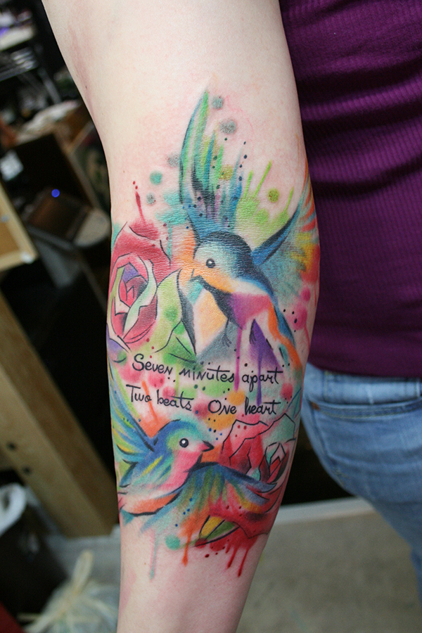 Skull and the spaceウォーターカラースタイルの鳥、フリーハンド