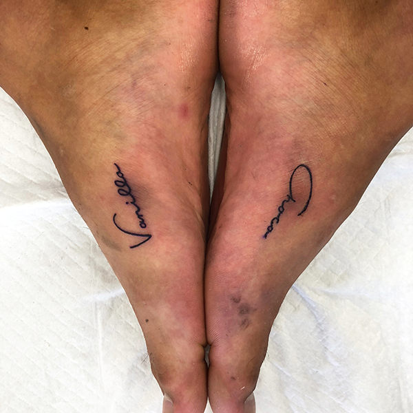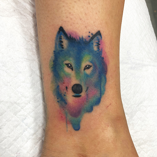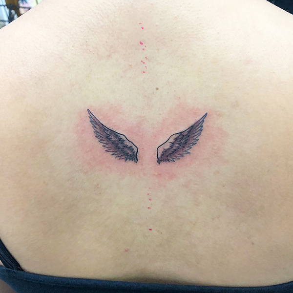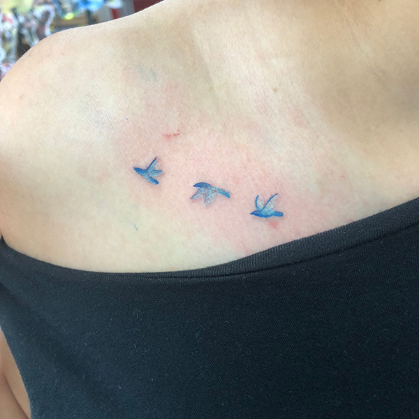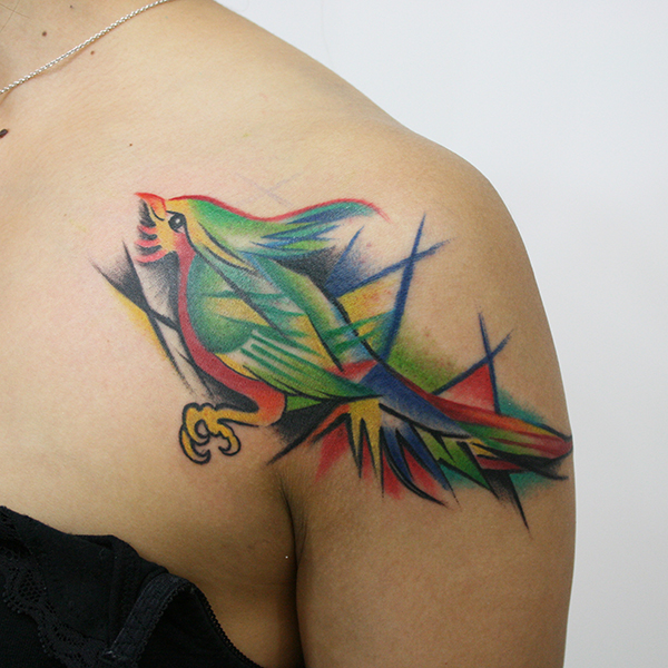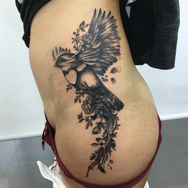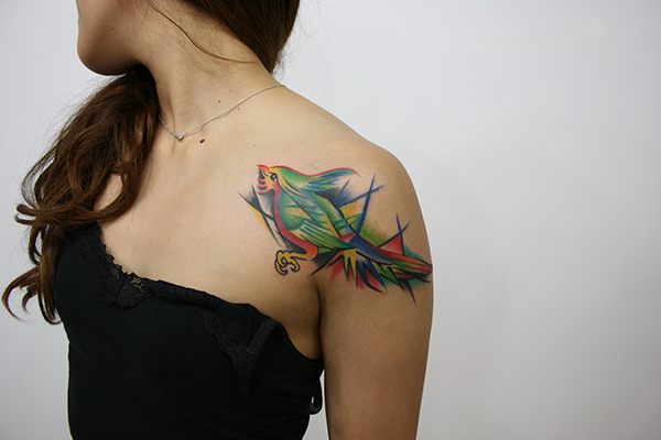 Blue bird and roses, Watercolor-style, Freehand麻、カバーアップの前後