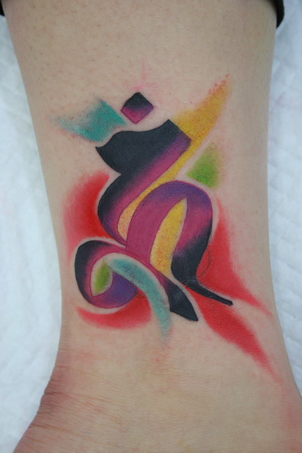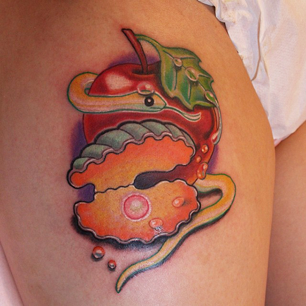The third eyes tiger, on kneeフルーツタトゥー、いちじく、バナナ、スイカ