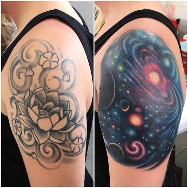 The sea and cloud, The sunrise and spaceバイオオーガニックタトゥー、内部に蓮の花