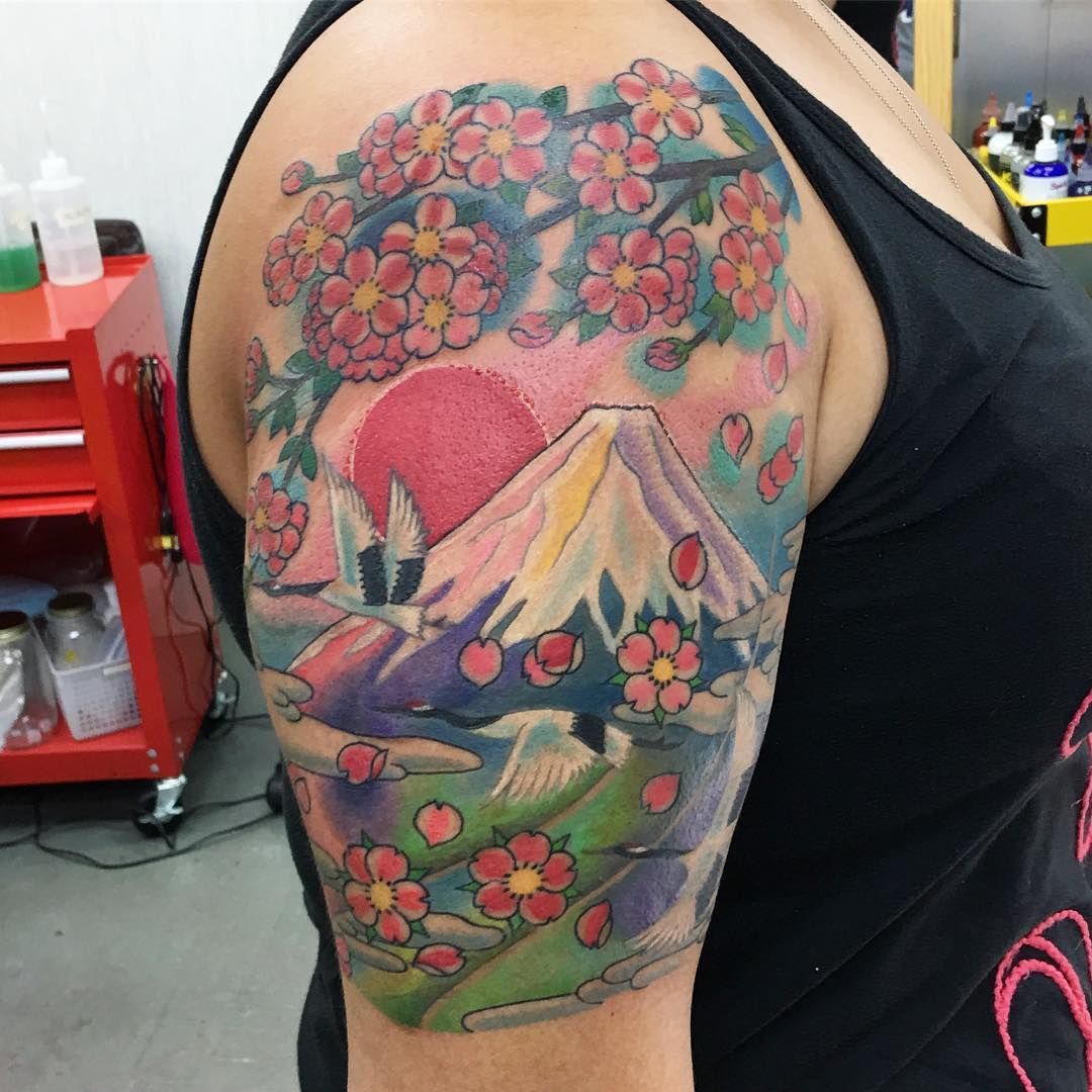 Sunset tattoo, on forarmたぬきの置物