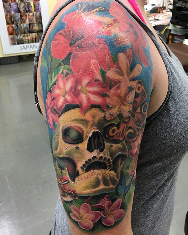 The skull on an elbowバイオオーガニックタトゥー