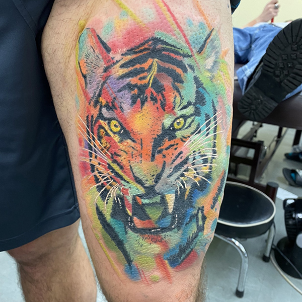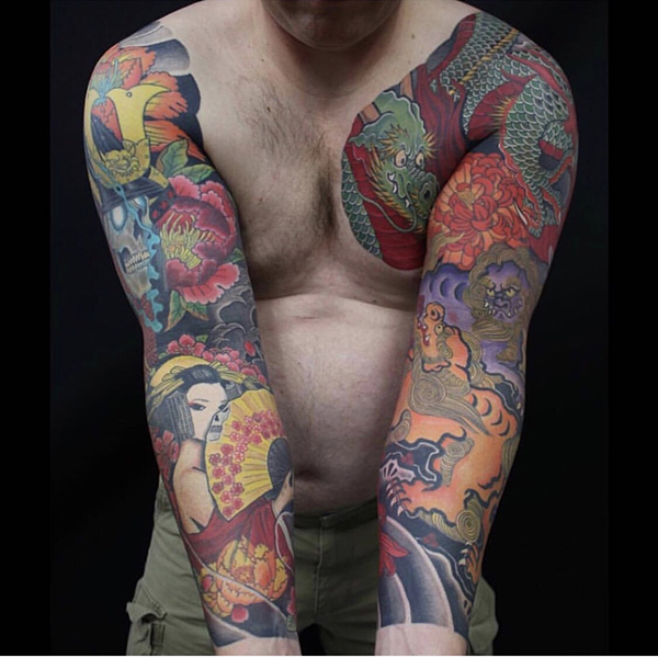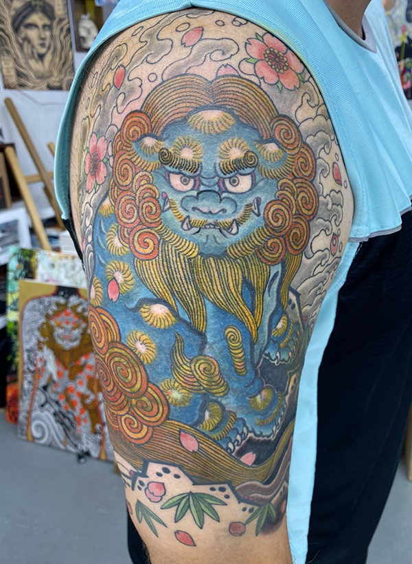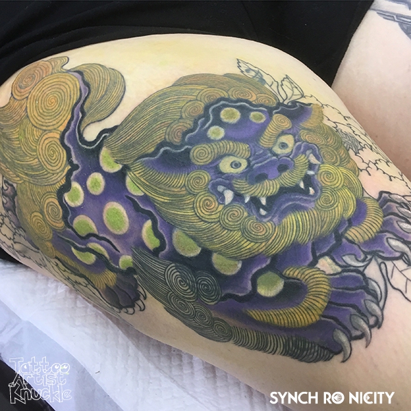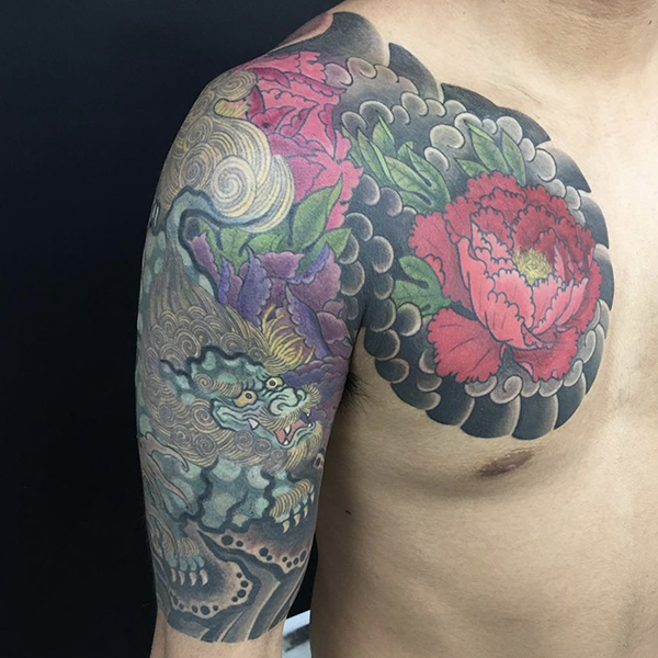 Karajishi, Cover up tattoo, on Thigh牡丹、肘下外側