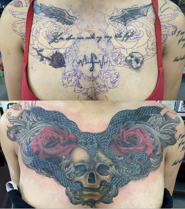 Space tattoo, Cover upスペースタトゥー、カバーアップの前後