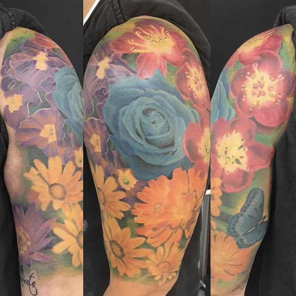 Floral Half Sleeve in Realistic Style日本語作品説明