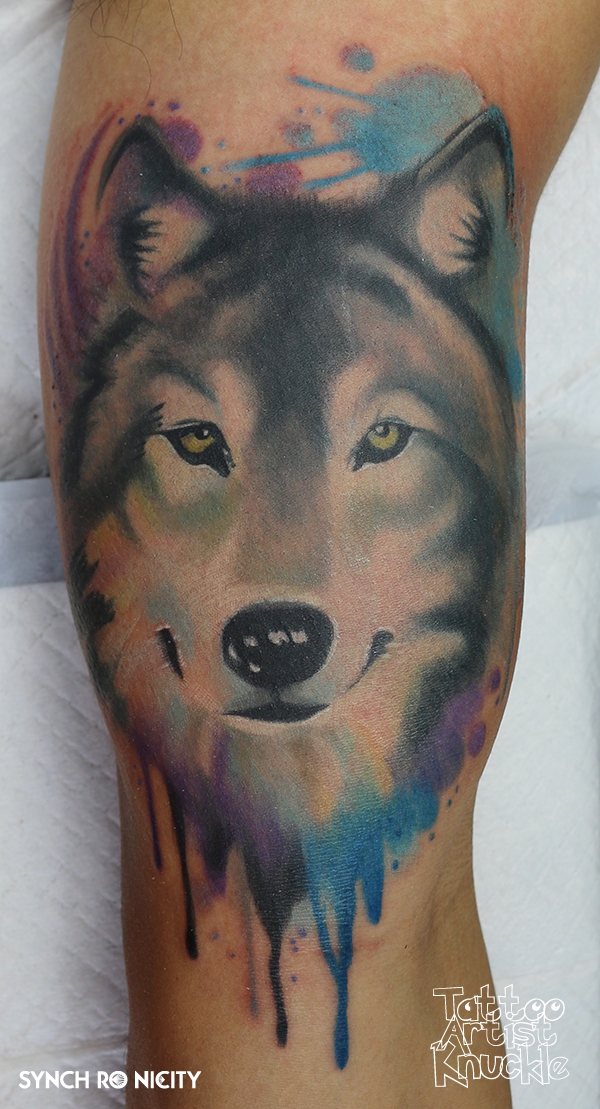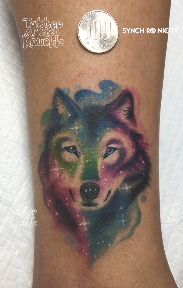 Tiger, collaboration tattoo with Carson Yip狼、ウォーターカラースタイル