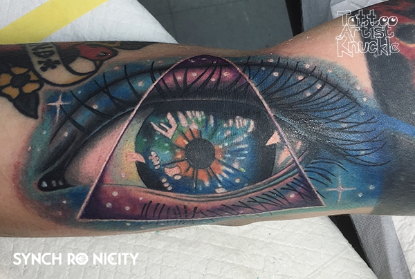 Space tattoo, Full sleeve, 3D tattoo三角形と目と宇宙
